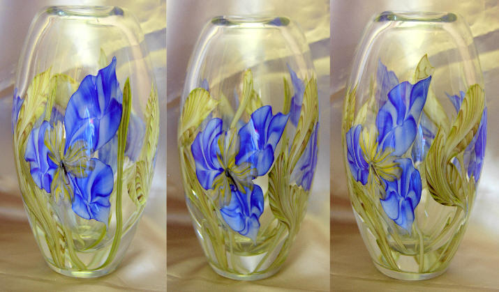 A fantastic one off 24% lead crystal blue Orchid vase.